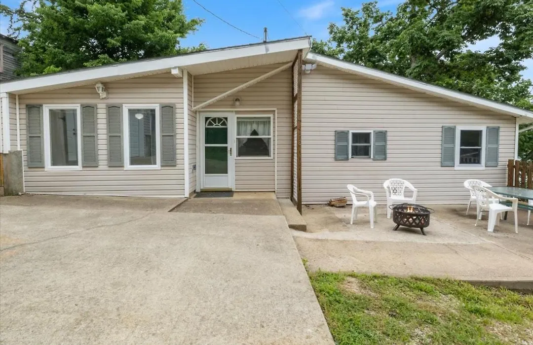 Situated 5 km from the Larry R Gale Access Lake Ozarks, Lakefront Escape, Sunrise Views, Boat Slip & Community Dock Access Roach villa invites guests to relax at a patio.